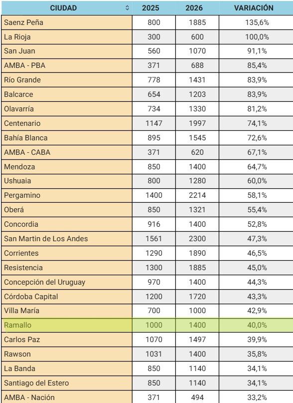 La ciudad de Ramallo se encuentra en la posición número 22 con un aumento del 40%.