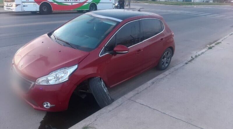 El incidente ocurrió cuando el conductor de un automóvil Peugeot transitaba por la intersección de Ruta 188 y Mendoza, llevando a cabo maniobras peligrosas. Durante su recorrido, el vehículo impactó contra el cordón de la calzada, ocasionando la rotura de la rueda delantera.