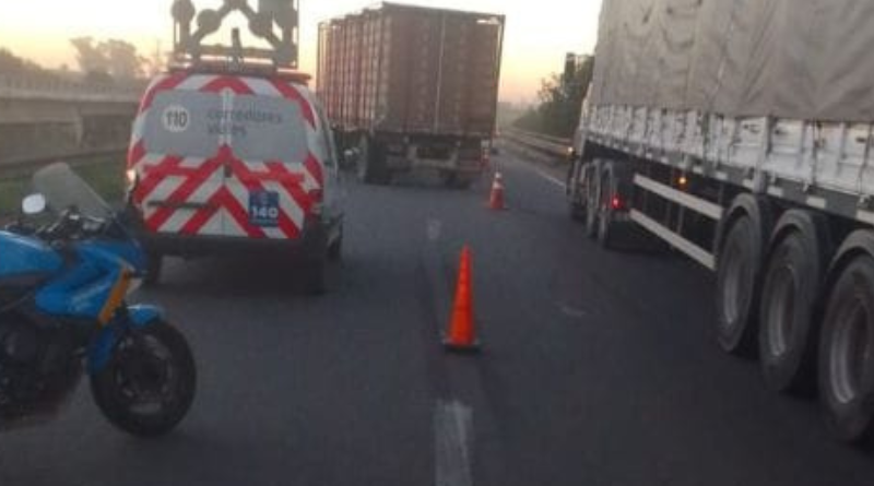 Un accidente de tránsito que involucró a un automóvil y dos camiones se registró este
