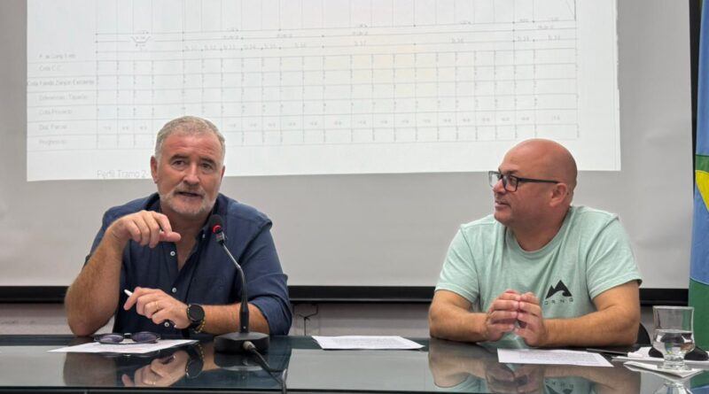 El intendente Mauro Poletti, junto al secretario de Obras Públicas, brindó una conferencia de prensa