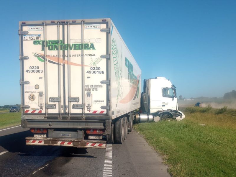 Este miércoles por la tarde, en el km 208 de la ruta 9 (carril descendente), un camión Volvo 440 con semirremolque pertenenciente a la empresa Expreso Pontevedra, que era conducido por Alejandro Ruíz Diaz, de 46 años, oriundo de Merlo, colisionó por alcance con un Fiat Iveco con semirremolque cargado con postes de quebracho. Como consecuencia del impacto, falleció. El otro conductor, de Santiago del Estero, salió ileso.