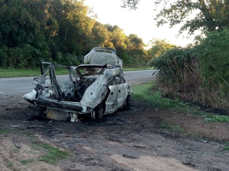 Camioneta incendiada con signos de explosión