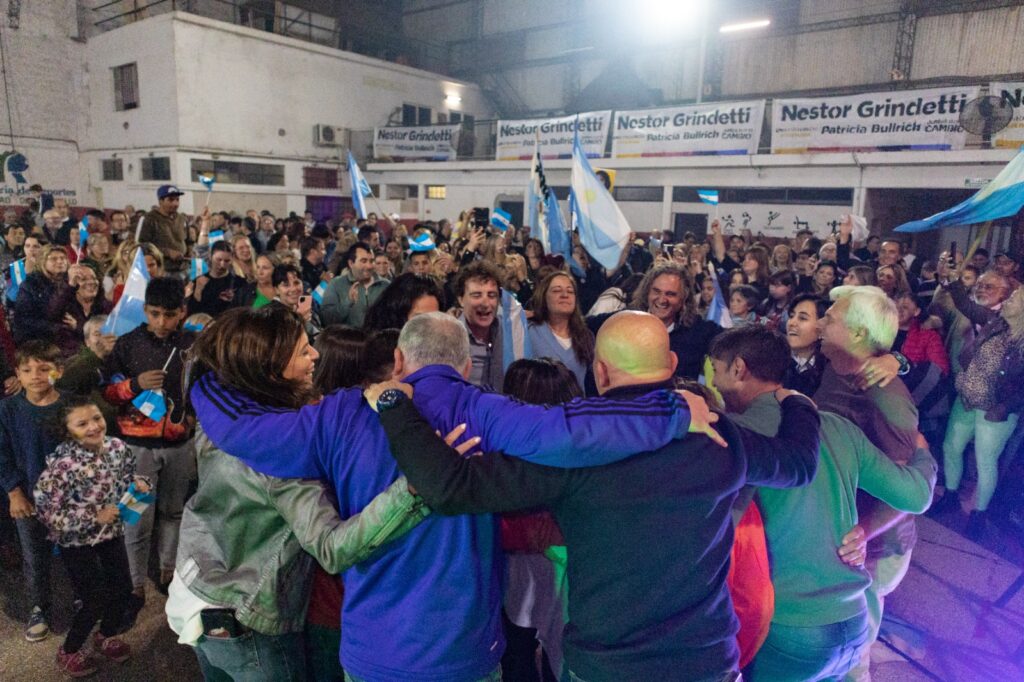 En el escenario, Giammaria estuvo acompañada por los integrantes de su lista, entre ellos Luis Algacibiur, Soledad Agotegaray, Paula Dusso y Juan Manuel Despósito.