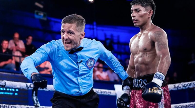 Juan Cruz Uncos, quien obtuvo el título Fedelatín supergallo frente a Rubén Cantero el último