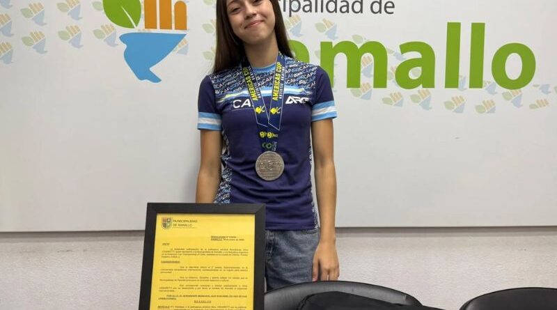 El intendente de Ramallo, Mauro Poletti, recibió en su despacho a la destacada patinadora ramallense