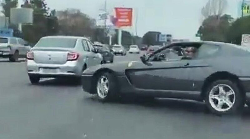 Una Ferrari gris GT 456 fue filmada realizando maniobras peligrosas en la avenida Lugones, a la altura