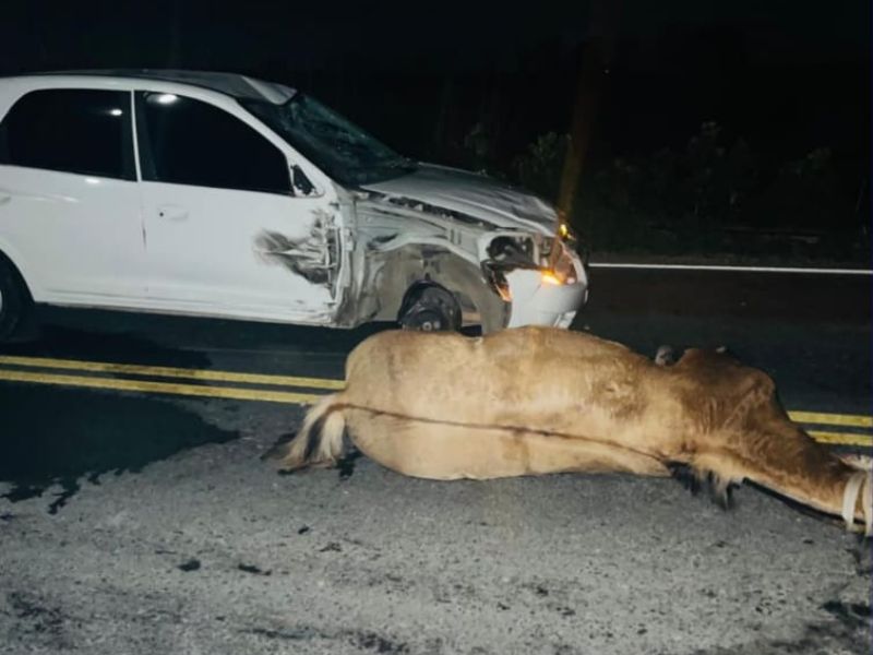 El conductor, un hombre de 33 años resultó con golpes en la mano y la acompañante, mujer de 51, con algunos de mayor consideración, pero que no revestirían gravedad. Ambos fueron trasladados al nosocomio local. El tránsito estaba cortado en ambos carriles a la espera del arribo de Policía Científica. El caballo quedó muerto sobre la cinta asfáltica.
