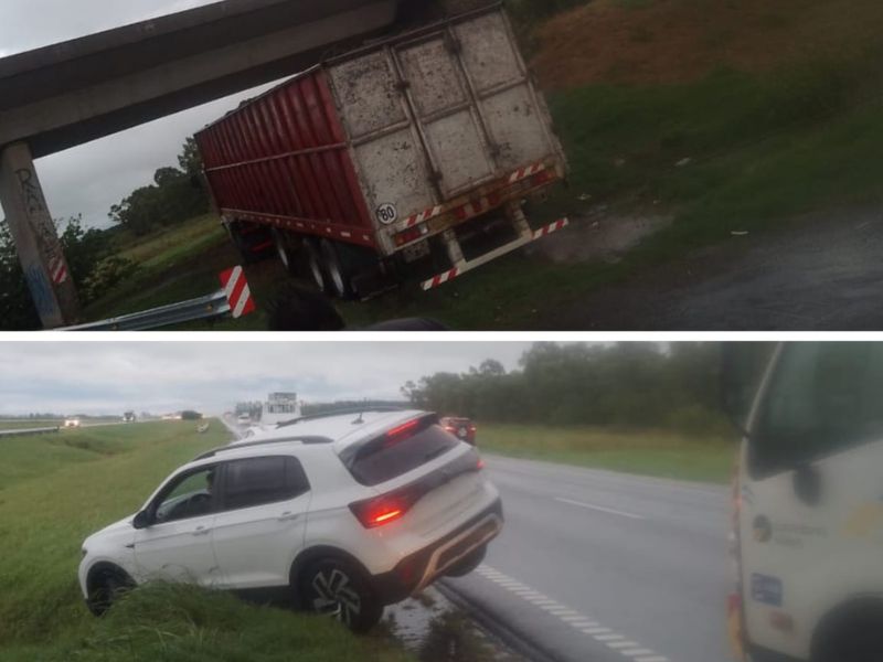 En el km 194, despistaron un automóvil Volkswagen T-Cross blanco, conducido por un joven (21) oriundo Chilecito (La Rioja), y un camión Mercedez Benz con acoplado donde viajaba un masculino (44) de Villa Constitución; ambos conductores resultaron ilesos.