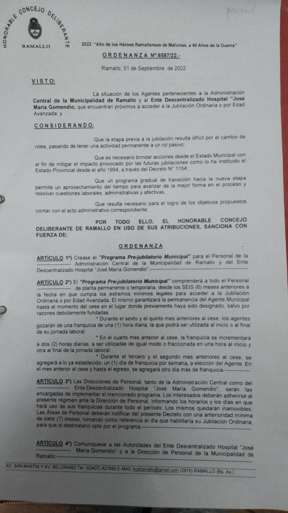 El bloque de concejales de Juntos por Ramallo presentó un proyecto de minuta (se aprobó en la última sesión) donde afirma que sí está vigente ese programa y por esa razón solicitan a la Dirección de Personal del Ente Descentralizado Hospital Gomendio y de la Administración Central que informen por qué no se dio cumplimiento en los casos mencionados en las notas.