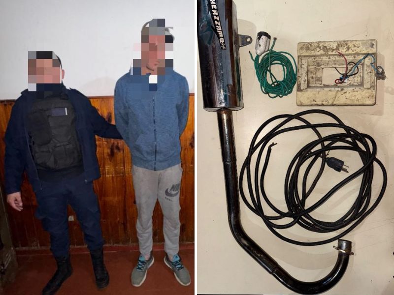 El hecho fue denunciado el pasado 30 de junio por una mujer de 22 años, quien relató que, alrededor de las 17:30 horas del 30 de junio, se presentaron en su domicilio dos hombres. Uno de ellos comenzó a exigirle una suma de dinero que —según dijo— le debía su marido, e intentó agredirla físicamente. Ante esto, la víctima logró cerrar la puerta, aunque minutos más tarde el agresor ingresó por la parte trasera de la vivienda, sustrayendo sin ejercer violencia un caño de escape de motocicleta y cables de alta tensión, para luego darse a la fuga junto a su cómplice.