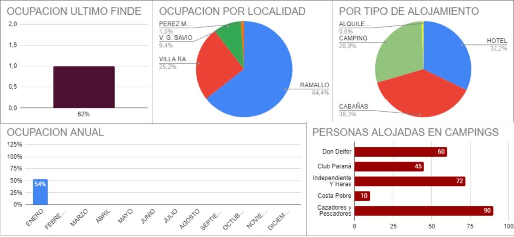 El área, perteneciente a la Secretaría de Desarrollo Económico de la Municipalidad de Ramallo a cargo de Pablo Wozniak, realizó una estadística sobre la ocupación los alojamientos que arrojó el siguiente detalle: