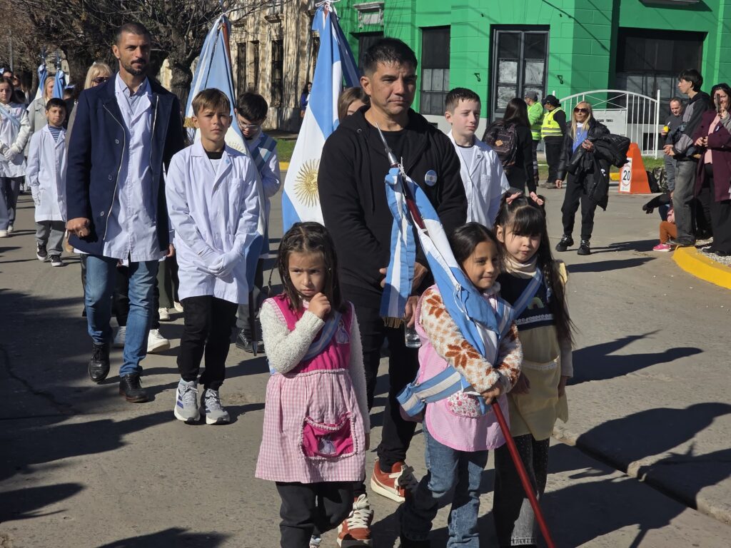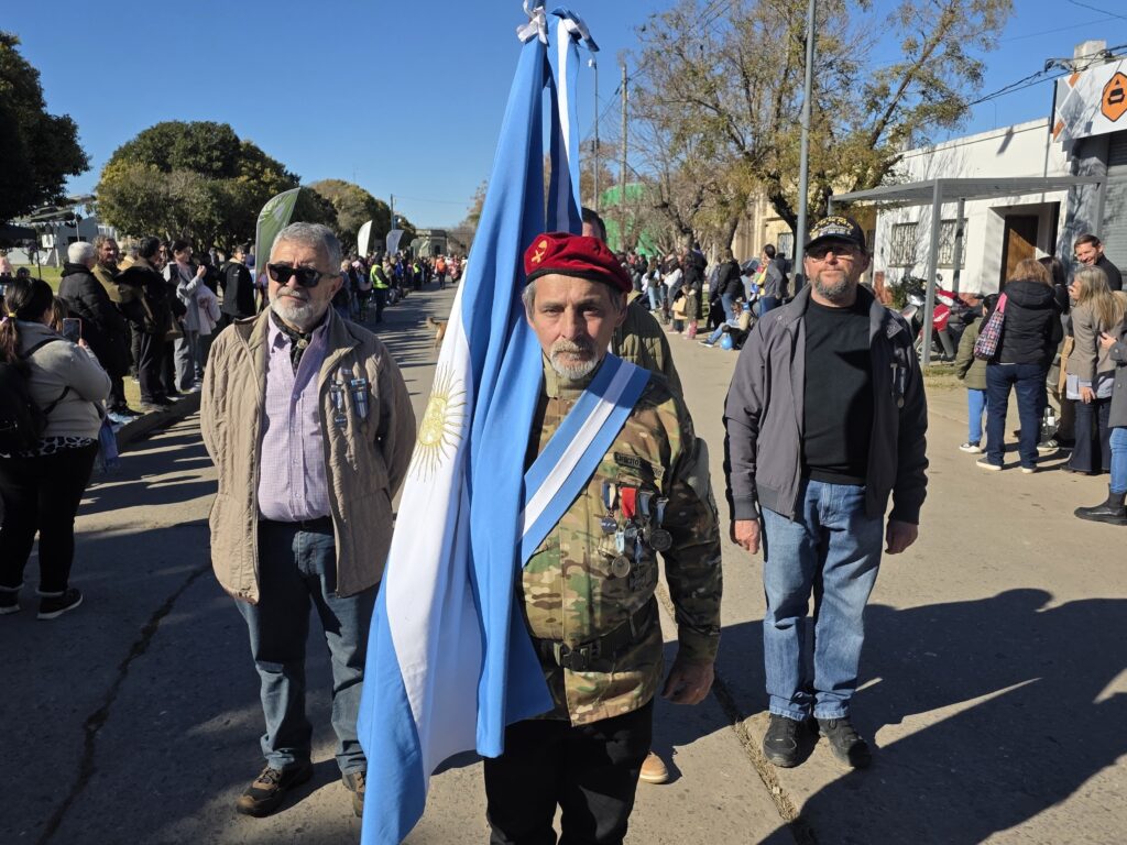 Entre los presentes se destacaron veteranos de Malvinas, efectivos de Bomberos Voluntarios y de la Policía Comunal, clubes deportivos, centros tradicionalistas y autoridades locales. Durante el acto, se realizó la tradicional promesa a la bandera por parte de alumnos y la entrega de una ofrenda floral en homenaje a Manuel Belgrano.