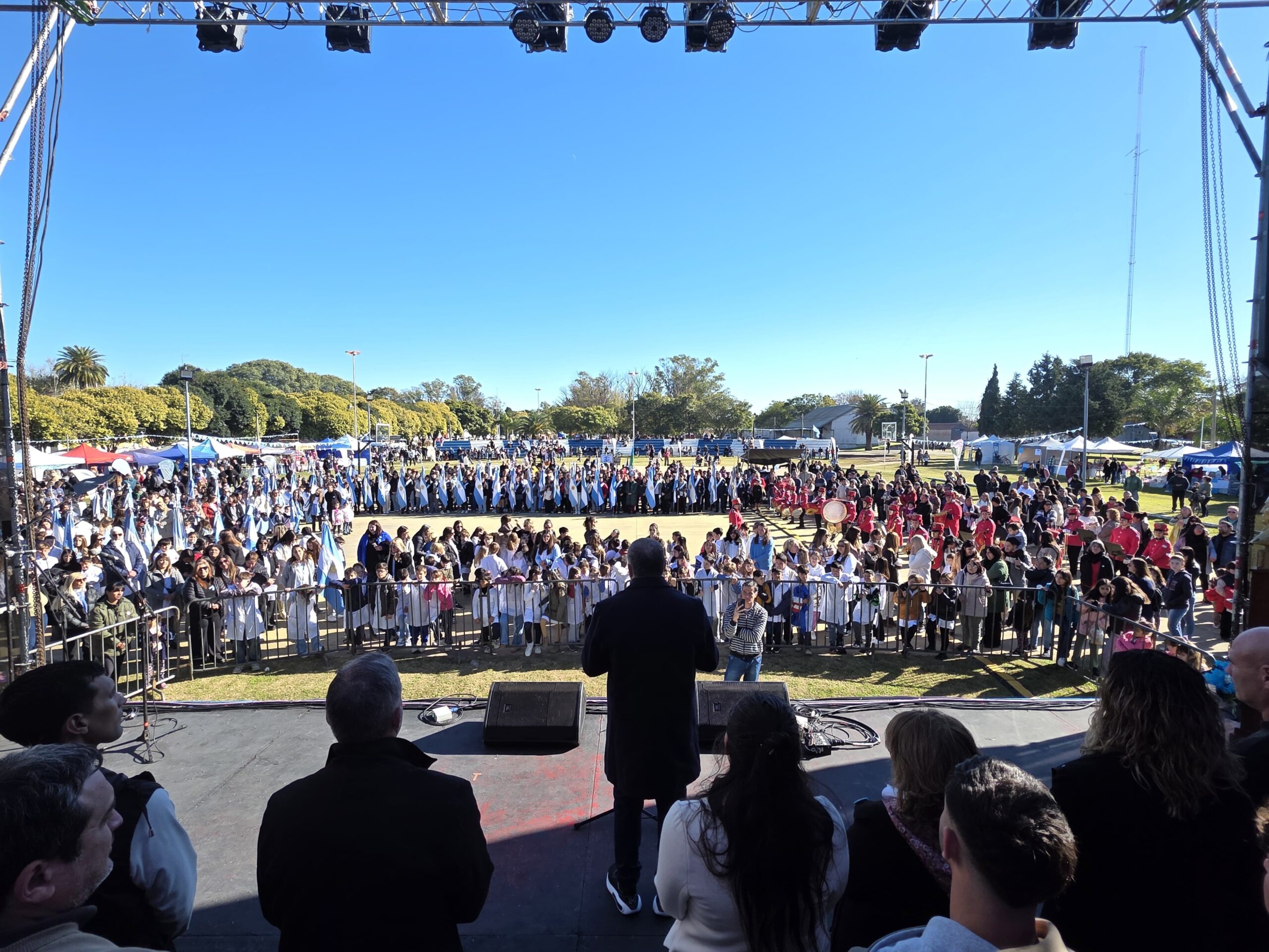 La jornada comenzó a las 10:30 con el acto protocolar, en el que participaron las Banderas de Ceremonia de distintas instituciones. La apertura estuvo a cargo de la Banda Infanto Juvenil, y contó con una destacada interpretación del Himno Nacional por parte de la cantante lírica Catalina Martínez.