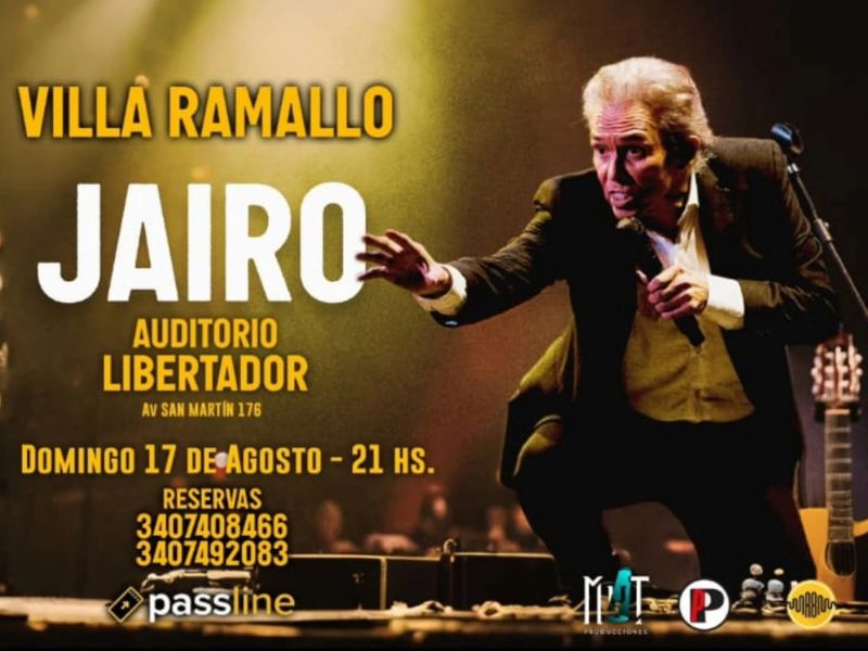 El próximo domingo 17 de agosto a las 21:00, el reconocido cantautor argentino Jairo llegará al Auditorio Libertador de Villa Ramallo con un espectáculo que promete un recorrido por canciones de todas las épocas. En esta oportunidad, estará acompañado por su hijo Yaco y su nieto Francisco.