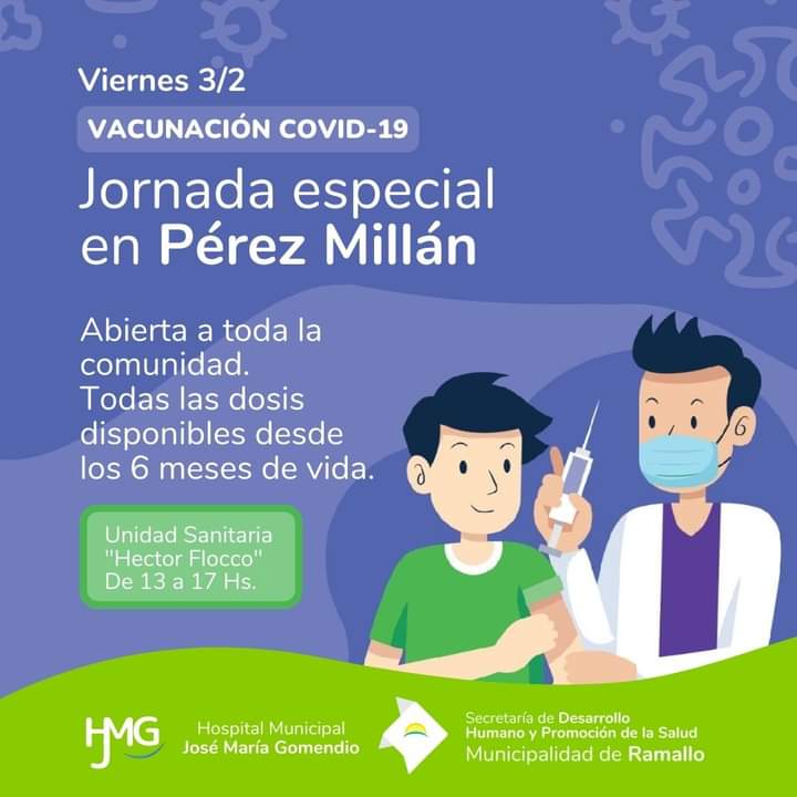 Este viernes 3 de febrero, de 13:00 a 17:00hs., jornada especial de vacunación en la Unidad Sanitaria de Pérez Millán.
