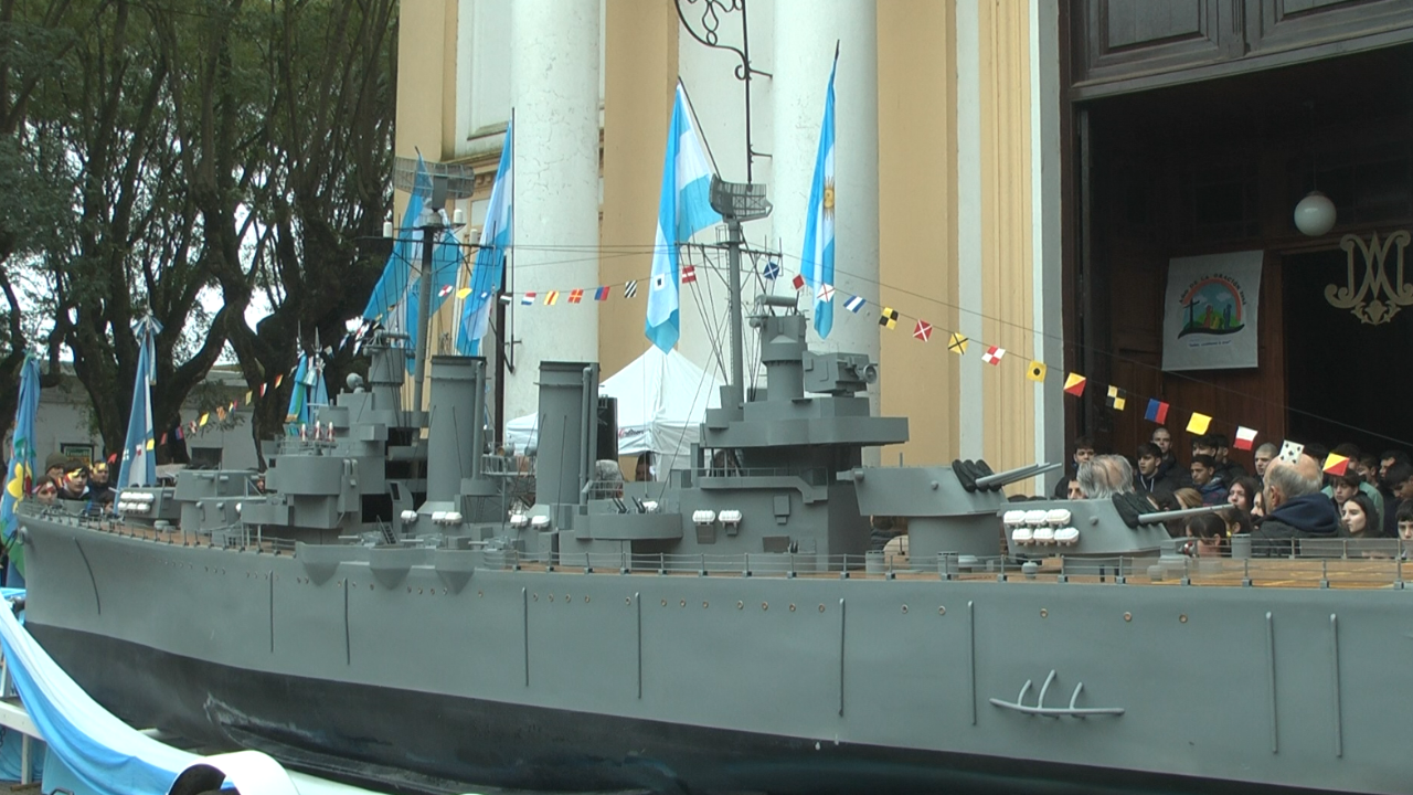 La réplica a escala del Crucero ARA General Belgrano llegó a San Pedro junto a su creador, el entrerriano Sergio «Titi» Gamella, por invitación de la Asociación Cultural Sanmartiniana.