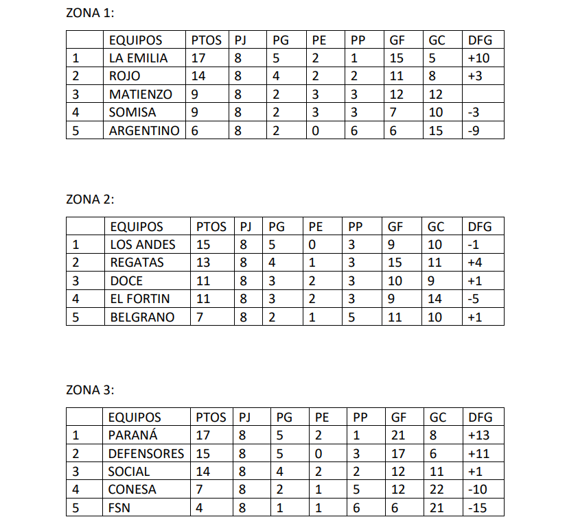 Cruces de liguilla: Paraná- 12 de Octubre; La Emilia- Social; Los Andes- Regatas; Defensores- General Rojo.