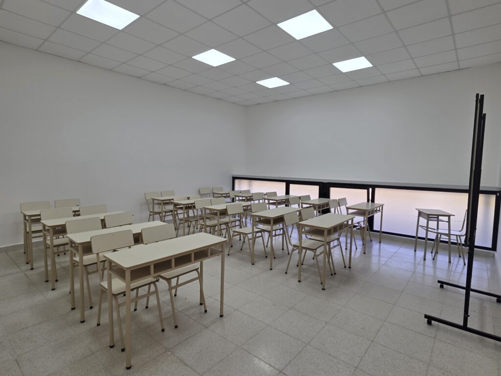 La ampliación del edificio incluyó la incorporación de dos aulas de 40 metros cuadrados cada una, nuevos núcleos sanitarios para mujeres, varones y personas con discapacidad, que se suman a la infraestructura existente: aula magna, nodo tecnológico, baños para docentes y auxiliares, cocina, comedor para estudiantes, y oficinas para los directores del establecimiento y del Centro Universitario.