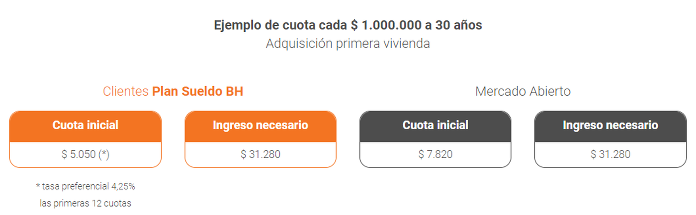 La línea financiará el 80% del valor de la vivienda o el mismo porcentaje en los valores de la construcción y tendrá un plazo de 360 meses (30 años). Quienes ya sean clientes de la entidad y dispongan de un Plan Sueldo pagarán la mitad de los intereses durante el primer año (4,25%) y desde el segundo un 8,5%, al igual que el resto de los tomadores de créditos.