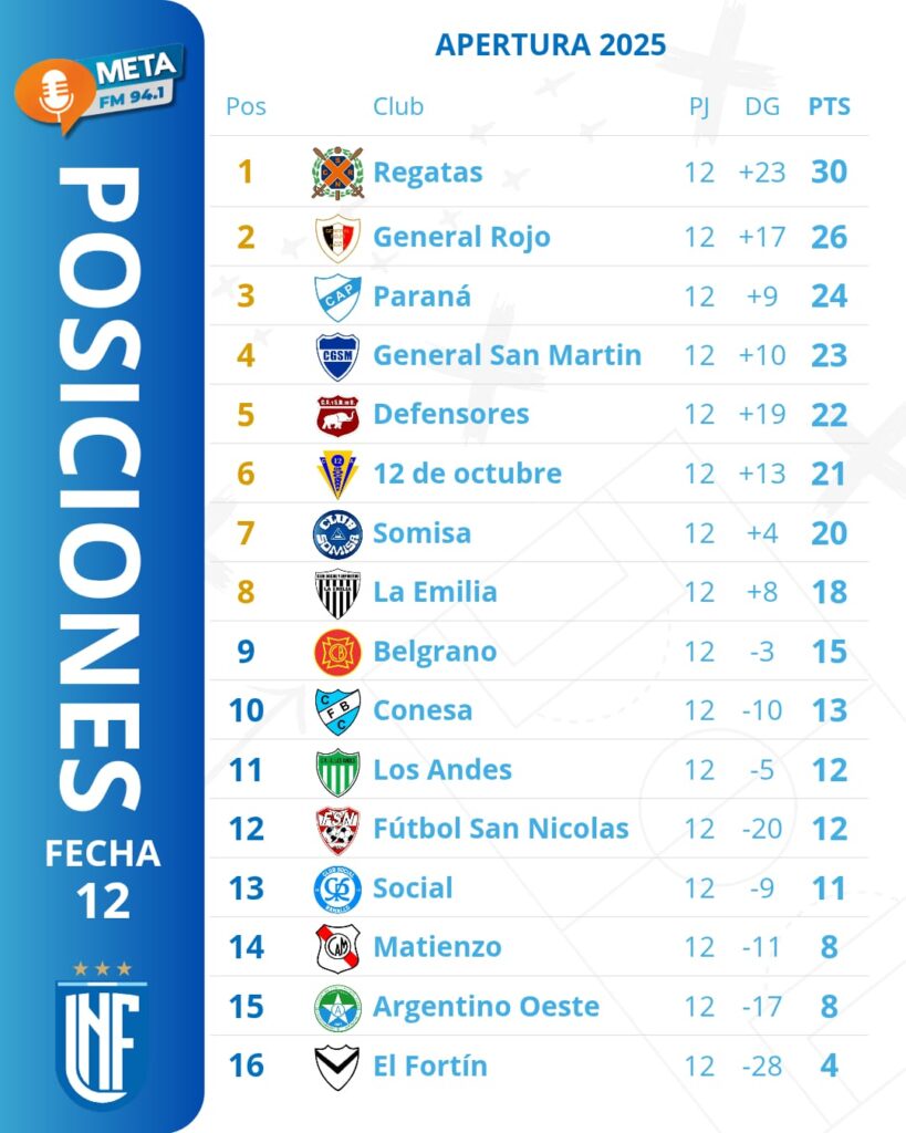 Defensores y Regatas igualaron este lunes 0-0 en el cierre de la fecha 12 del torneo «Oscar Tito Baquela». El partido estuvo bastante apagado en el primer tiempo, pero se encendió en el complemento donde los dos tuvieron varias ocasiones para abrir el marcador que no supieron aprovechar. El trámite fue intenso, por momentos de pierna fuerte, pero también de emociones, con dos equipos que buscaron la victoria hasta el final.