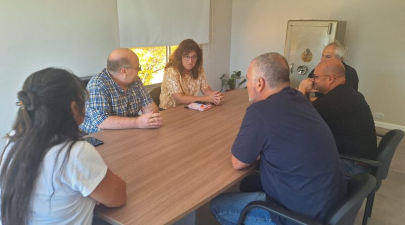 El intendente Mauro Poletti, junto al delegado de la localidad, Sergio Giolito, y el secretario de Obras Públicas, Leandro Torri, mantuvo una reunión con la familia Minucci, propietarios de los terrenos donde se construye el nuevo edificio para la Escuela Técnica N° 2, con el objetivo de avanzar en la obra.