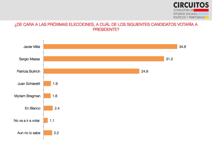 La consultora Circuitos que dirige el sociólogo Pablo Romá, hizo un relevamiento entre el 20 y 25 de septiembre con personas mayores de 16 años que viven en siete conglomerados del país: provincia de Buenos Aires; Ciudad Autónoma de Buenos Aires; Córdoba y Santa Fe; La Pampa, Mendoza, San Juan, San Luis y La Rioja; Catamarca, Chaco, Tucumán, Jujuy, Salta, Santiago del Estero y Formosa; Misiones, Corrientes y Entre Ríos; Rio Negro, Neuquen, Chubut, Santa Cruz, y Tierra del Fuego.