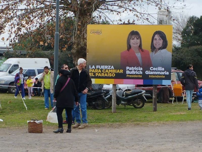 El cartel, con la imagen, los nombres y cargos a los que aspiran Patricia Bullrich y Cecilia Giammaría, tiene la leyenda: “La Fuerza para cambiar El Paraíso”.