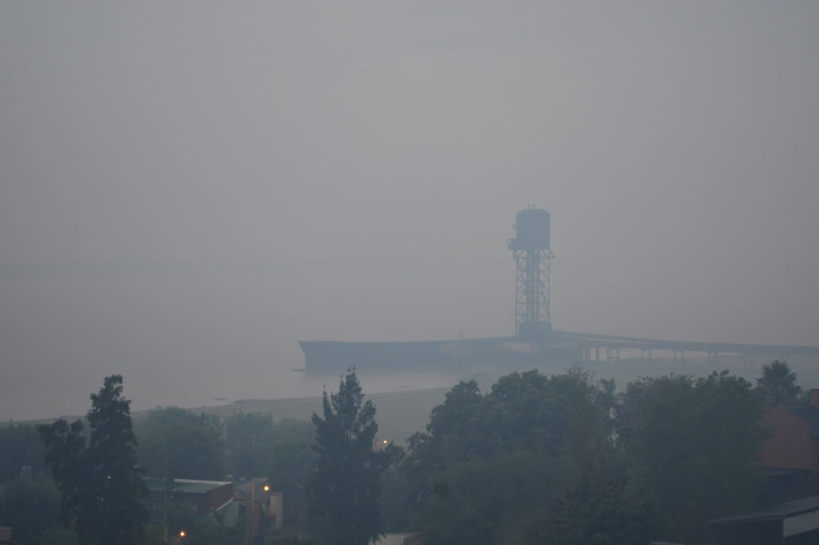 Así amaneció este jueves Ramallo, cubierto por una impresionante nube de humo que, en algunos sectores, casi impide respirar con normalidad.