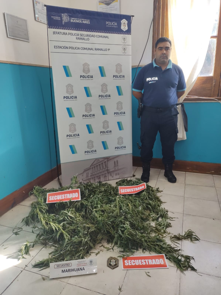 Este viernes en horas de la madrugada, personal de la Comisaría de Ramallo junto al GTO, en céntrica de ciudad cabecera, procedieron a la aprehensión de un hombre de 29 años de edad, que se encontraba en la vía pública con varias plantas marihuana ( cinco plantas de gran tamaño), con un pesaje de 2,320kg.