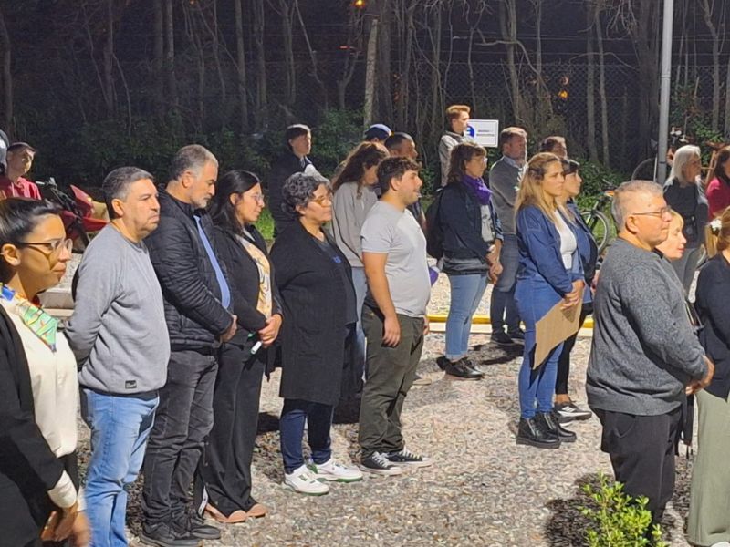 La concentración se realizó este martes en la plaza “José María Bustos” de Ramallo. Alrededor de las 18:00 horas, unas 250 personas se movilizaron hacia el Centro Universitario; acompañó la columna el intendente municipal, Mauro Poletti. Una vez en el lugar, referentes del Frente de Unidad Docente Bonaerense leyeron un documento. Comenzó Soledad Guidi (Suteba), continuó Verónica Petunchi (FEB) y finalizó Vanesa Cañón (Udocba).