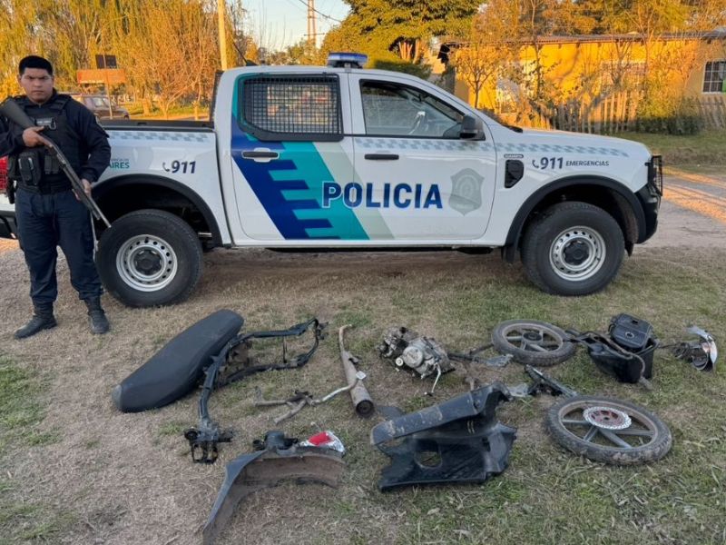 El allanamiento se llevó a cabo el 11 de junio y arrojó resultado positivo: en el lugar se halló la motocicleta robada, aunque ya desarmada. Además, fue aprehendida una mujer de 38 años, propietaria del domicilio, quien fue notificada por el delito de hurto agravado según el artículo 60 del Código Procesal Penal.