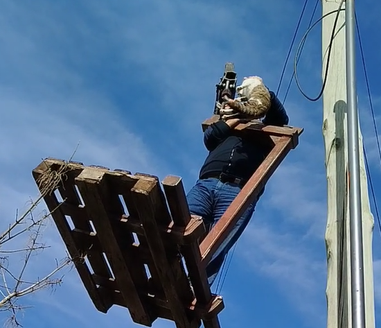 En ese momento, pasó por el lugar un camión con grúa, cuyo conductor, al ser consultado, se ofreció a colaborar en el rescate. Utilizando la grúa telescópica, que normalmente se emplea para el transporte de materiales, el hombre logró colocar la uña de la grúa y un pallet sujeto a la misma, permitiendo que un agente policial que se encontraba de guardia subiera al vehículo.