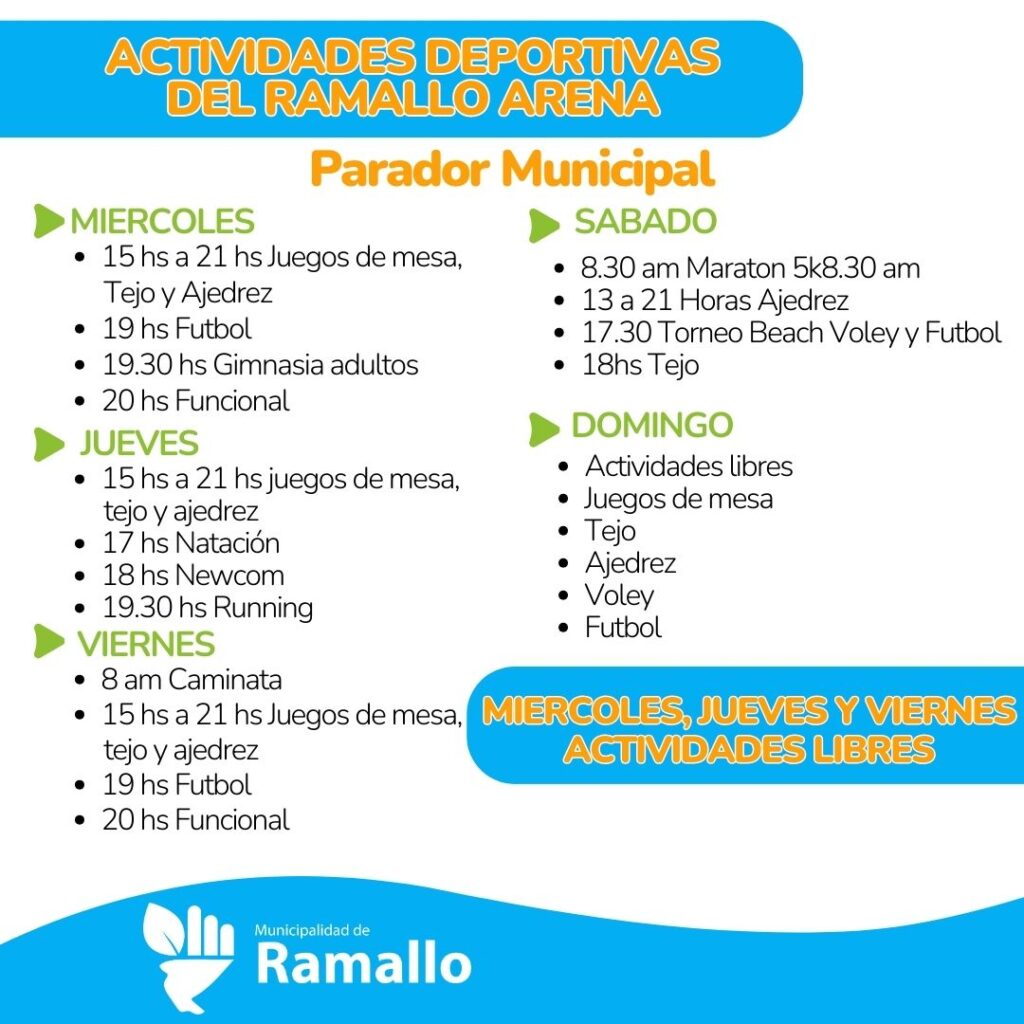 Además, desde el miércoles, la municipalidad de Ramallo ofrece diversas actividades culturales y deportivas. Y a partir del jueves, visita Ramallo el programa Recreo de la provincia de Buenos Aires.