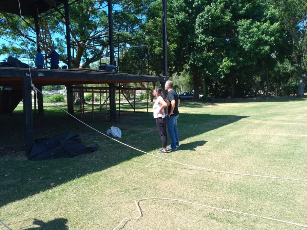 Otra de las actividades que realizó el jefe comunal fue la visita al Paseo Arturo Jauretche, que se está acondicionando para recibir este sábado la 28° edición del Ramallo Porá. Se realiza corte de pasto, pintado de cordones y preparativos en el escenario.