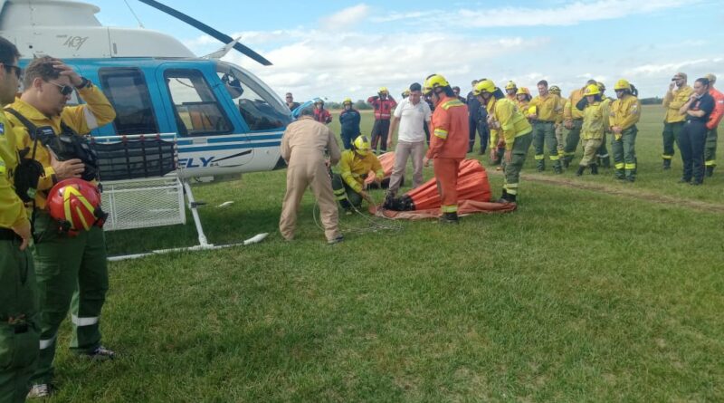 Defensa Civil y Bomberos de Ramallo se capacitaron en combate aéreo de incendios forestales