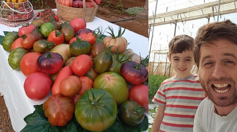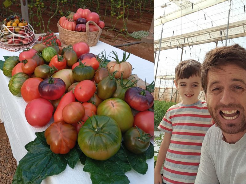 En esos invernaderos se cultivan principalmente tomates, berenjenas, calabacín (zucchini), pimiento, sandía y melón. La firma que lo contrató “se dedica a la producción de tomates de especialidad, son distintos a los que conocemos en el supermercado, son de distintas formas, colores, se venden a un precio más caro”.