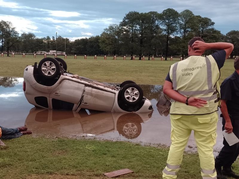 Daniela Sperandini y Jorge Guerrina regresaban el 2 de marzo de Casilda con su hija y una amiga. No suelen viajar los sábados, pero tuvieron que hacerlo por un arreglo en el departamento donde vive la joven que estudia Veterinaria. Esperaron a que pase la tormenta y salieron. Cuando pasaron por el kilómetro 222 de la ruta nacional 9, a la altura del Camping de la UOM, un auto los pasó, no vio la curva y, después de algunas vueltas, terminó su recorrido con las ruedas apuntando el cielo en una laguna que se había formado por la lluvia.