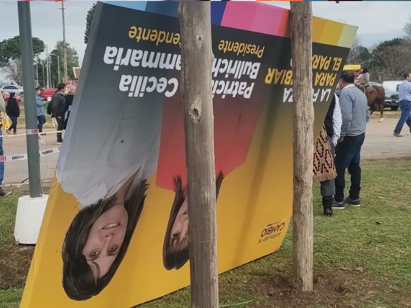 Al igual que en 2023, un cartel de campaña de la candidata de Hechos en Ramallo, que había sido colocado hace pocos días, fue vandalizado en la localidad de El Paraíso.
